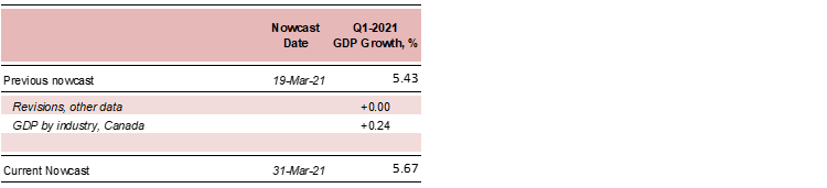 Table 1: Canadian GDP Nowcast, Q1-2021