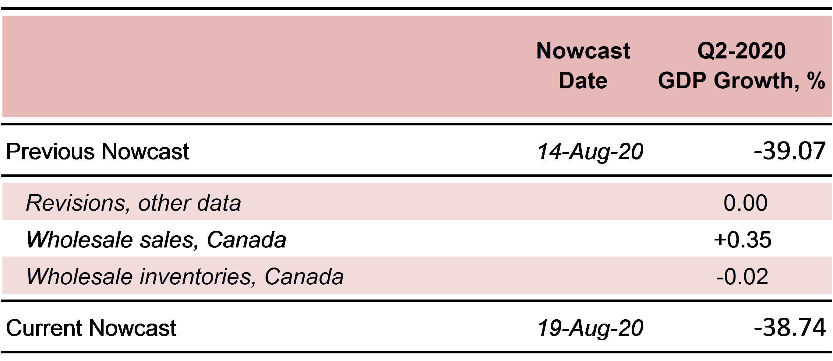 Table 1: Canadian GDP Nowcast, Q2-2020