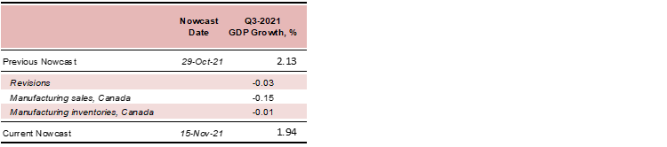 Table 1: Canadian GDP Nowcast, Q3-2021