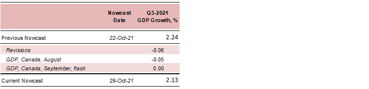 Table 1: Canadian GDP Nowcast, Q3-2021