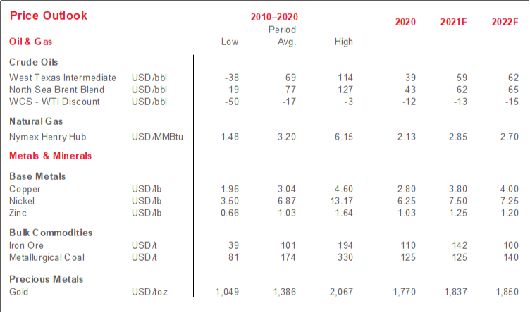Natural Gas (US$ per mcf) Average export price quoted by the National Energy Board.