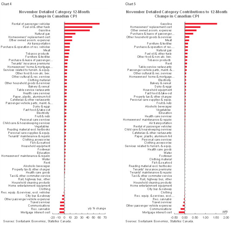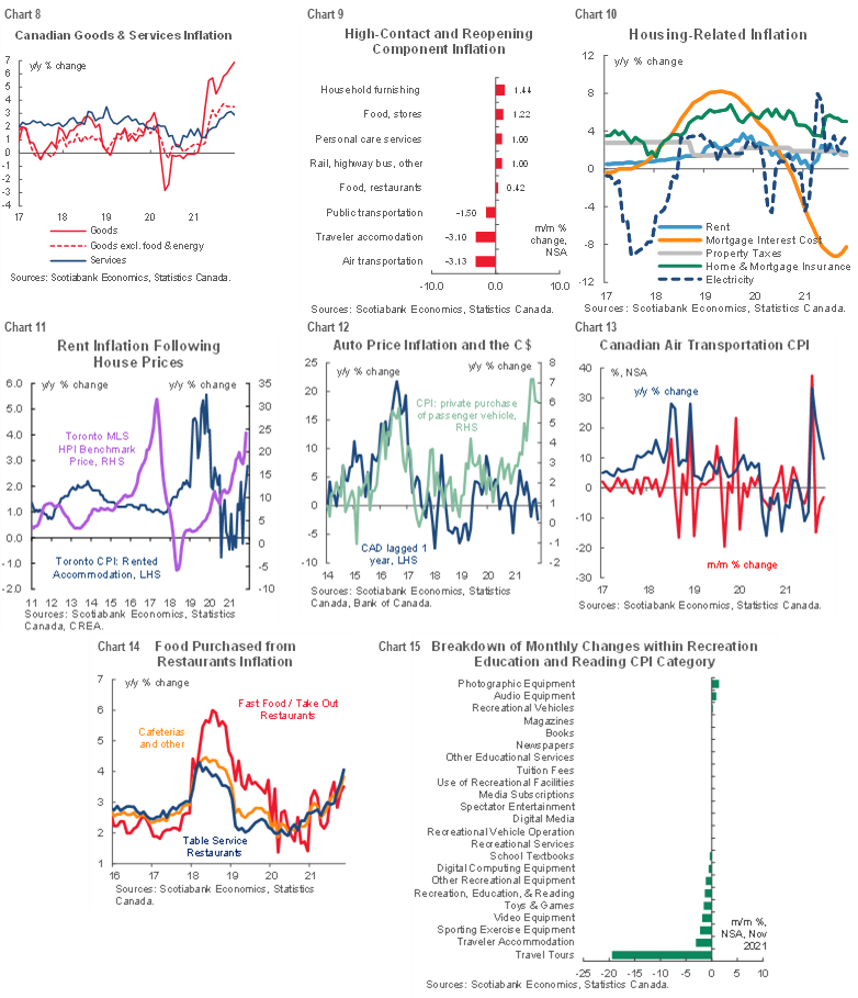 Where to from here? I hope the BoC doesn’t pounce on these figures as evidence that inflation is stabilizing or turning lower. For one thing, it’s mismeasured as explained. For another, we’re at a point of transition; if omicron further damages supply chains and the economy moves into excess demand alongside maximum employment and beyond as we think it will in 2022, then another up-leg of inflation drivers may be ahead. The transitory debate is about the full cycle; not just one report.