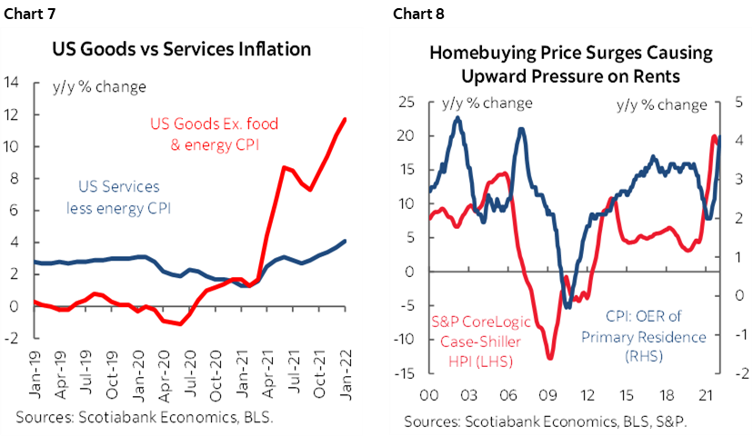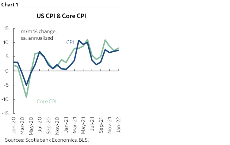 Markets are now pricing a cumulative six hikes by the Fed this year if they go at a quarter-point drip pace. Our forecast is still 7 hikes. Odds of a 50 move in March are obviously higher after payrolls and CPI and with growing evidence that omicron is fading. There are also higher odds that they shift to roll-off starting as soon as Q2. Furthermore, this kind of heat basically kills any last chance at a scaled back Build Back Better fiscal package with Senator Manchin very likely to dig in even further. In my opinion, President Biden is in a very weak position into the mid-terms and not only because of the incumbent’s usual disadvantage during mid-term elections.
