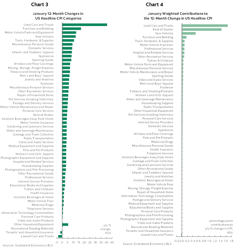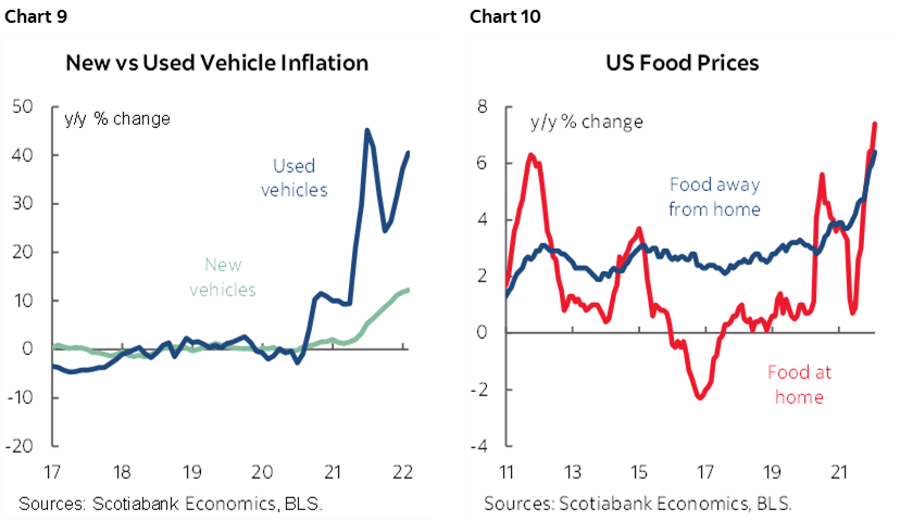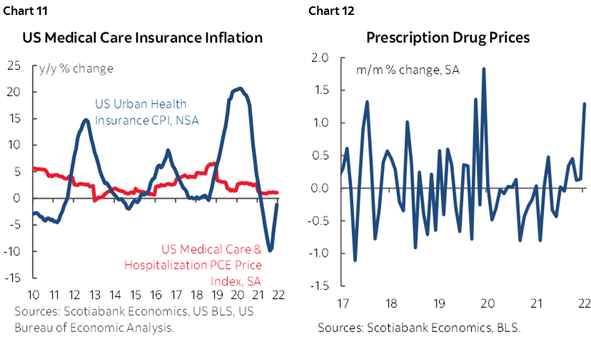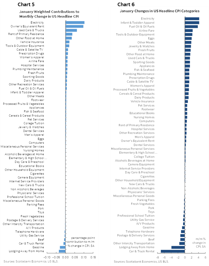 Other key contributions came from housing as owners’ equivalent rent was up 0.4% m/m with rent up 0.5% m/m. Food was up by 0.9% m/m. Electricity prices jumped higher by 4.2% m/m but gasoline (-0.8%) and utility gas (-0.5%) restrained some of the overall jump in total energy prices (+0.9% m/m).