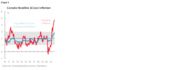 - Q4 GDP growth in Canada is tracking much stronger than we had anticipated. In fact, it’s hard to decipher much of any macroeconomic effect upon the quarter as a whole from BC’s flooding and/or the other drivers of the economy buried this effect in the numbers. That positions the exit point from 2021 at a higher level which helps to insulate against some of the omicron shock into the start of the year.