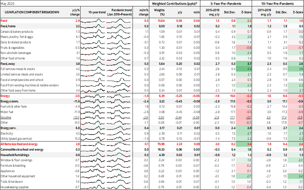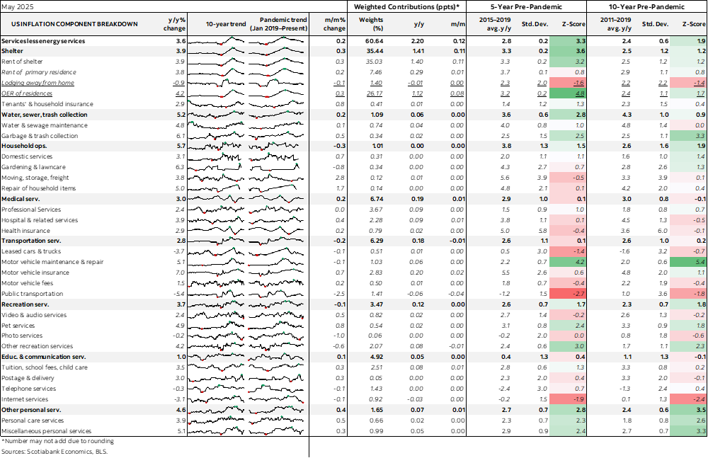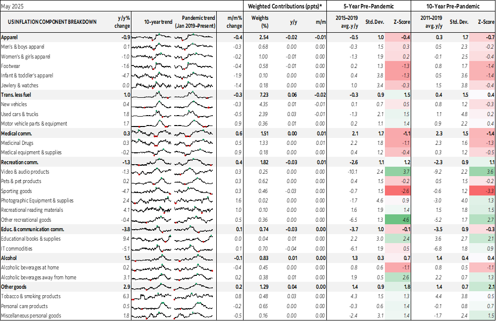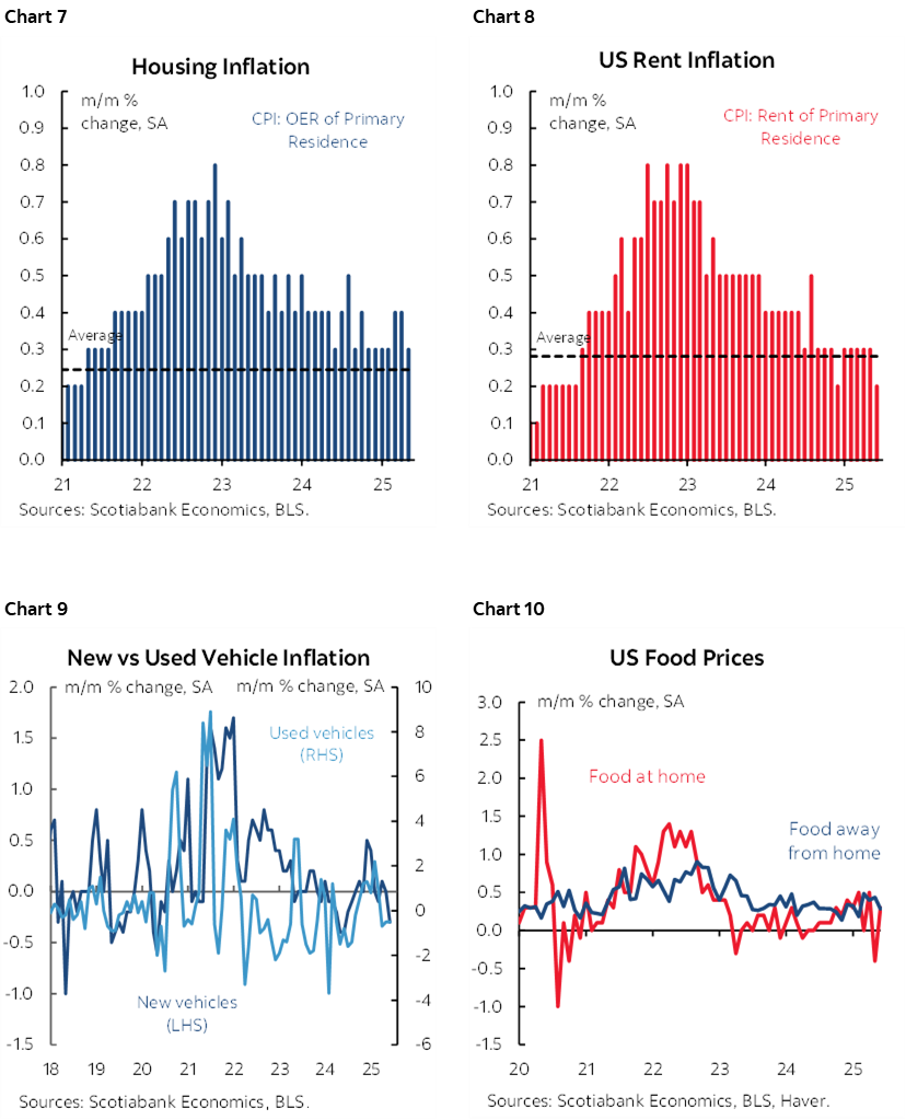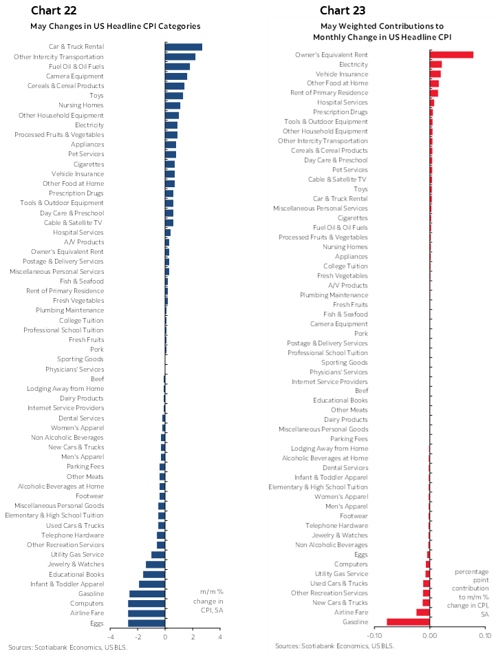 What effect that had is illustrated in chart 6. At alternative SA factors that have been used in prior months of May, core CPI could have easily rounded to about 0.2% m/m SA. That still would have been weaker than expected, but not quite as weak.