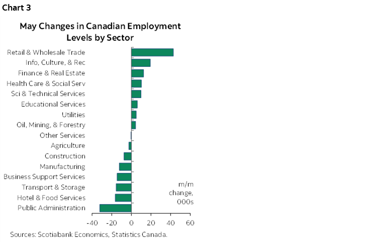 - Hours worked were flat, restrained by weather, but mildly supportive of Q2 GDP