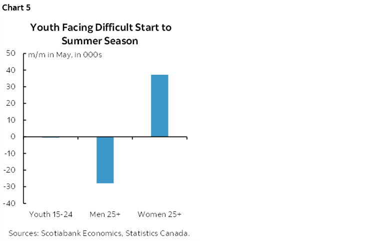 Youth employment was more resilient than I had feared. Jobs for youths aged 15–24 were unchanged, but it has been a soft four months that still indicates a weak market for them.