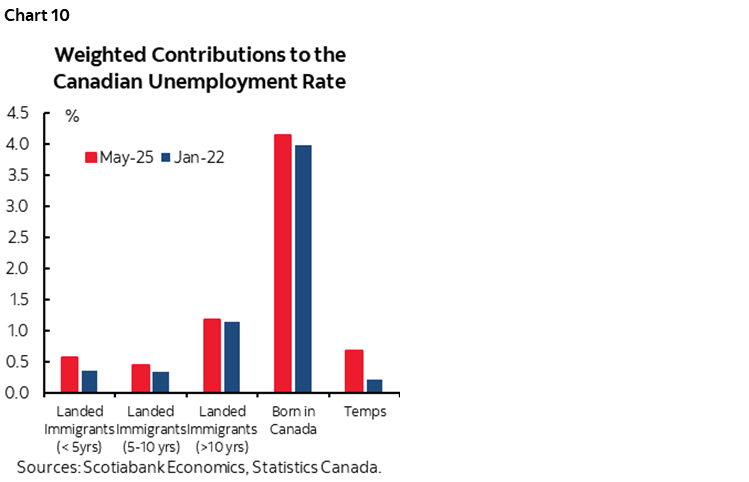 While the unemployment rate ticked up to 7% because the labour force expanded by 35k last month and that exceeded aggregate job growth. The UR controlling for the election related loss of public admin jobs would not have risen. Further, the rise of the UR since 2022 has been mostly focused upon excessive numbers of temps (chart 10).