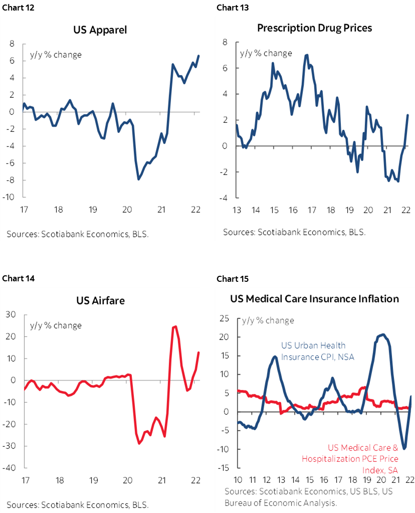 The pandemic-affected high contact areas saw prices light up. Airfare was up 5.2% m/m. Intracity transportation was up 1.1%. Intercity transportation increased by 1.2%. Car/truck rental prices were up 3.5% m/m. Lodging was up 2.2% m/m. The pick-up in mobility post-omicron fed high contact price pressures.