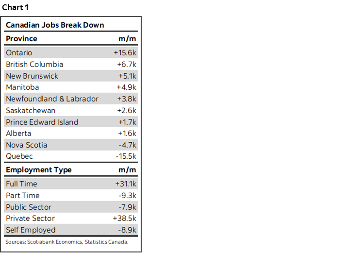 Ontario led the way among the provinces (+16k) with smaller assists from BC, Manitoba and the east coast provinces of N.B. and Newfoundland & Labrador.