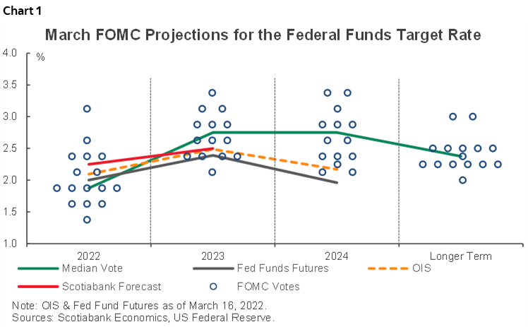 - Fed hikes, sharply raises projected rate hikes in line with Scotia Economics' forecasts
