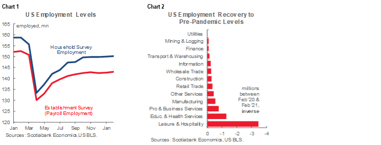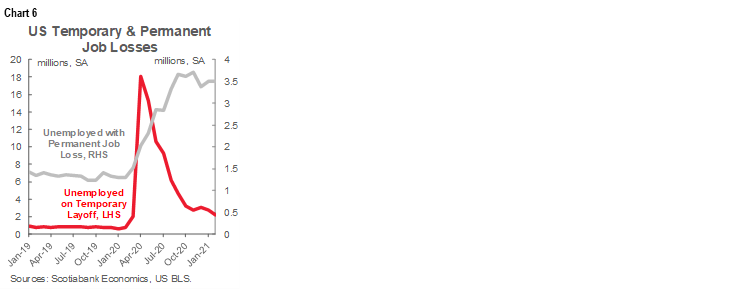 In any event, the main change in hiring momentum still lies ahead as absurdly strong fiscal stimulus combines with vaccines. I wouldn't be surprised to see some prints in the high hundreds if not millions along the way as businesses reopen. It’s misleading to suggest that the Fed wouldn’t care about GDP given the connection over time between economic growth and jobs. The loose Okun’s ‘law’ relationship would suggest that if we’re anywhere on the mark with our growth projections this year, then we could be looking at 4–5 million jobs being regained over the coming year. To me, that would be ‘substantial progress’ but we’ll have to see how it tracks and whether that ticks the taper box in the minds of FOMC officials.
