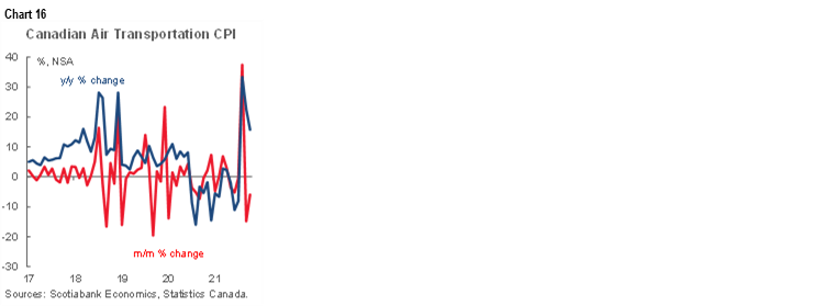 Airfare prices (chart 16) eased somewhat after the large prior gain but are exceptionally volatile.