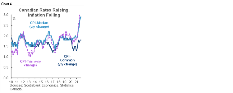 Chart 4 breaks apart the BoC’s three preferred measures of core inflation. Note the historic gap between common component CPI at just 1.8% y/y and the others. This issue deserves focused treatment because a common client question is whether common component’s low reading is the best one.