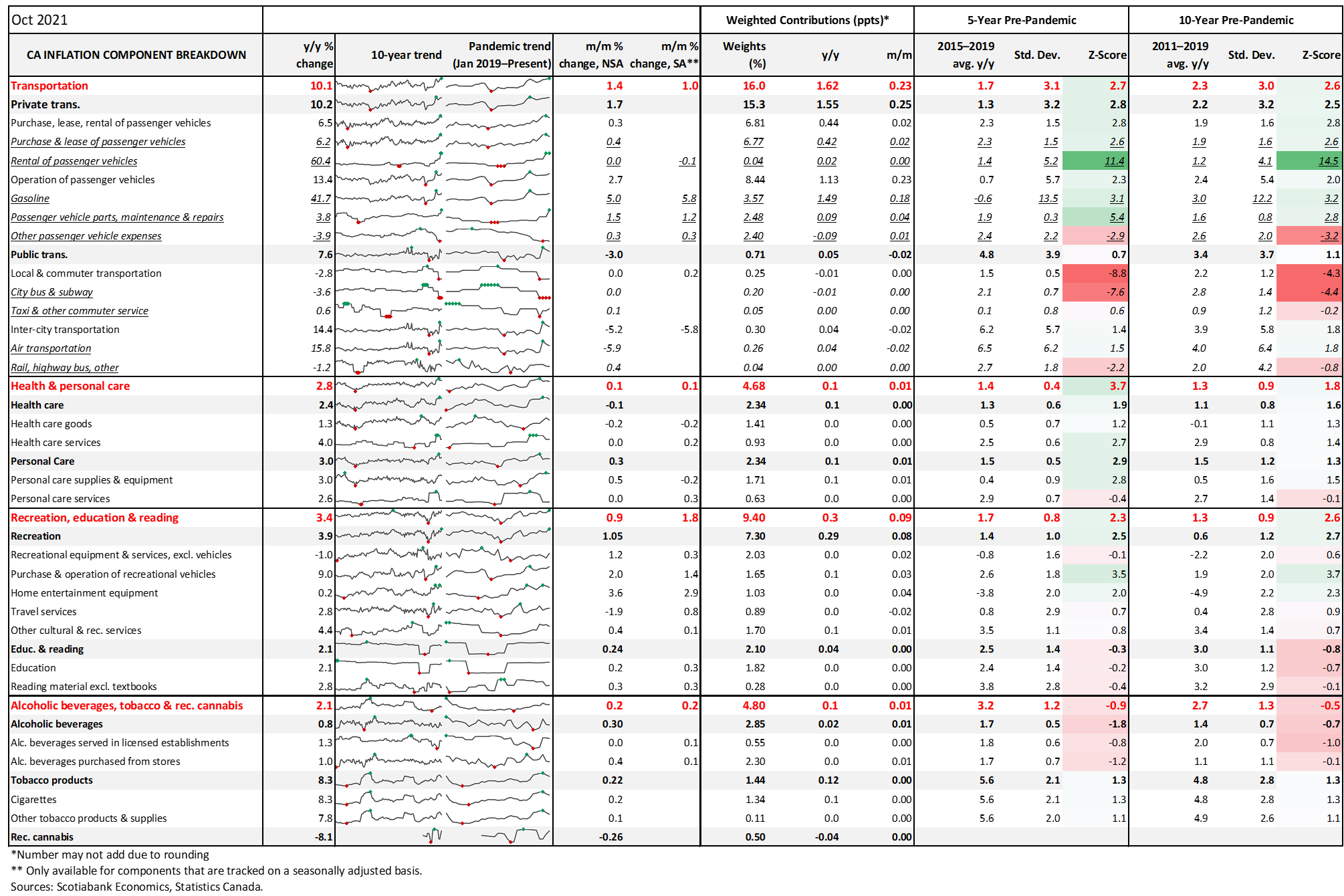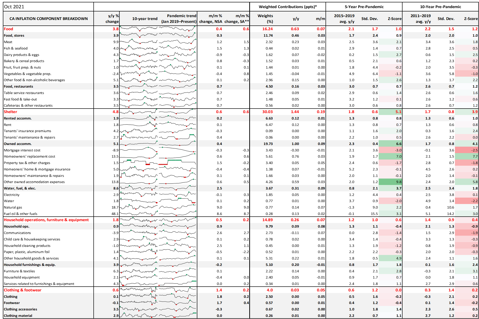 Please also see the complete inflation dashboard that breaks down individual components and their changes including mini-charts and Z-scores that depict the size of deviations from norms across individual price changes over 5- and 10-year intervals.