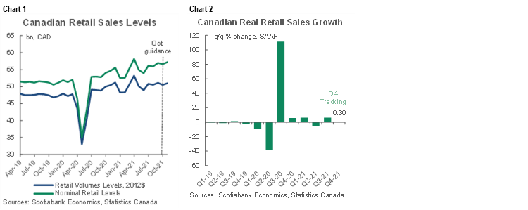 The dollar value of sales was up 1% m/m in October following a drop of –0.6% that wasn’t as bad as StatCan had initially guided (-1.7%).