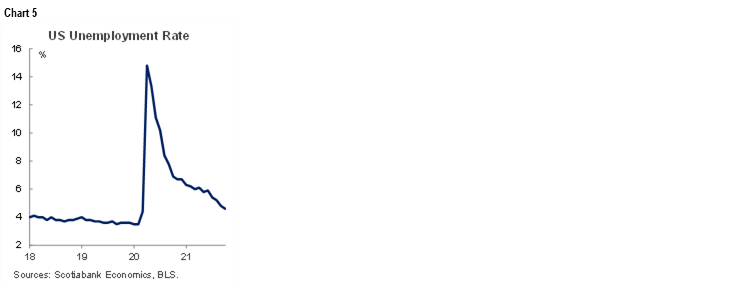 Wages are revealing in that regard. Average hourly wages were up another 0.5% m/m in October, or 5.6% at a m/m annualized rate. Chart 4. That continues to drive the wages trend higher into Q4. We want to see if that has legs beyond recent effects. That’s likely why Chair Powell emphasized monitoring this carefully over 2022H1.