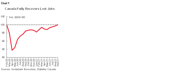 Second, Canada has also fully recovered in terms of the labour force participation rate at 65.5% which is back to February 2020 levels and only marginally below the pre-pandemic peak of 65.8% in April 2019. Check that box as well. See chart 2.