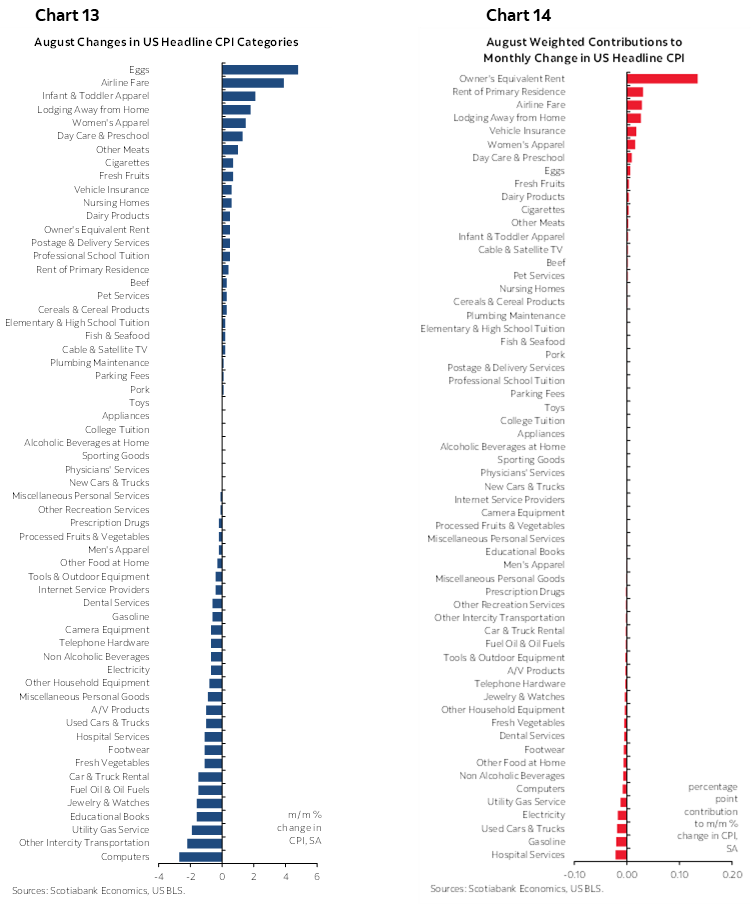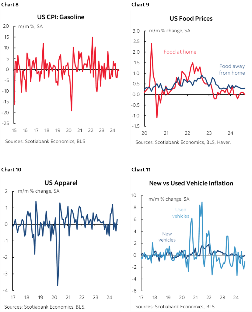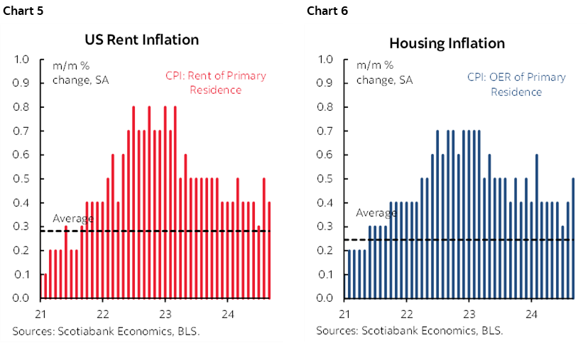 A key driver remains shelter prices that were up by 0.5% m/m SA with rent of primary residence up by 0.5%, and owners’ equivalent rent up 0.5% (charts 5, 6).