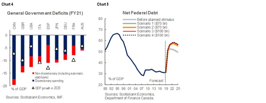 As big as this year’s deficit will be, governments around the world largely have a carte blanche for temporary COVID-19 spending. The IMF has been urging governments to spend—if they can afford it—to ward off a worsening outlook. Canada is set to provide the highest level of discretionary spending as a share of GDP (federal and provinces, combined) across all major economies (chart 4). This should, for the most part, be a good news story as it has helped engineer a near-term economic turn-around at a faster-than-anticipated pace despite the double shock through commodity channels. Furthermore, the federal government has borne the share of Canada’s costs which is also a positive as it has greater fiscal firepower and lower borrowing costs than provinces for the most part. But it must prove temporary to remain a positive and today’s update casts some doubt in this regard.