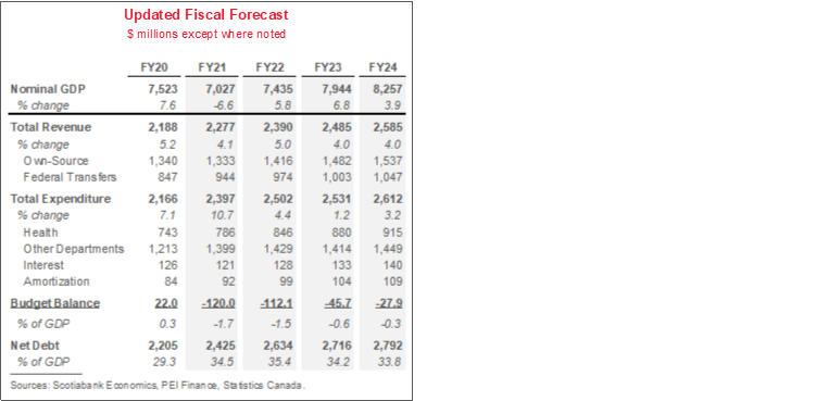 Economic projections underlying Budget appear reasonable and consistent with prudent fiscal planning. Our most recent PEI economic forecast assumes real growth stronger than the private sector average noted within the document, but was completed following the passage of additional US stimulus and already incorporates some Canadian fiscal support in the spring. To the extent that our more optimistic national-level expansion unfolds, the Island may see some budget balance upside.