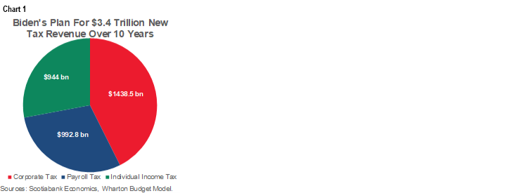 With spending proposals will go higher taxes. That’s where more of the market attention is likely to be focused. The indirect growth benefits to what Biden is proposing on infrastructure and program spending carry benefits to the economy that translate less readily into earnings and stocks than his tax plans for corporations and upper income earners. Evidence regarding the sensitivities around discussing such plans arises each time a headline hits and stocks dip. As a reminder of Biden’s overall tax plan, recall chart 1 that shows the sum total of his platform’s costing of additional tax revenues and the accompanying table that shows a breakdown of what he has planned on personal tax measures.