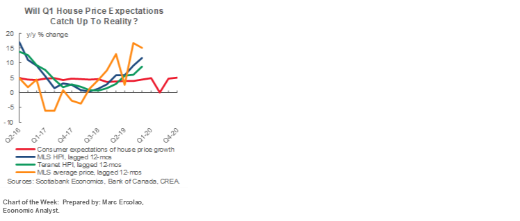 On Monday, the Bank of Canada will update its quarterly Canadian Survey of Consumer Expectations for everything from inflation and jobs to house prices. Governor Macklem recently completely changed his tune and indicated the BoC is seeing extrapolative house price expectations that raise concern about housing imbalances, and his remarks might have tipped off expectations for stronger consumer forecasts for house price gains in the survey. Subsequently, the BoC released this staff piece that flagged increased concern toward housing imbalances over recent months. These communications contrast with a relatively sanguine if not defensive attitude by the BoC to housing strength last year that they dismissed as driven by a transitory burst of pent-up demand and something that was a welcome source of economic growth. That was an exaggerated take, but my how times have changed at the BoC.