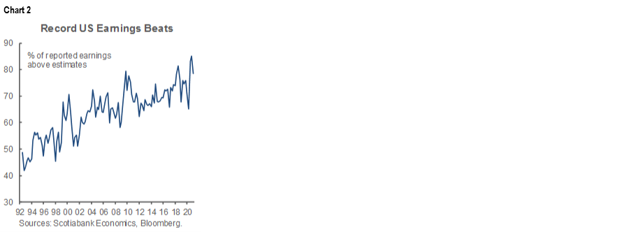 The analyst community is rather upbeat on the forward path for earnings (chart 1). The healing is continuing from the harshest results reported in the aftermath of the first wave’s shocks. Forward guidance from companies that informs this expected future path will probably be more important than actual results for Q1. In particular, watch for discussion and possible guidance around banks’ capital management plans given the flexibility granted by the Federal Reserve on dividend payouts and buybacks by June.