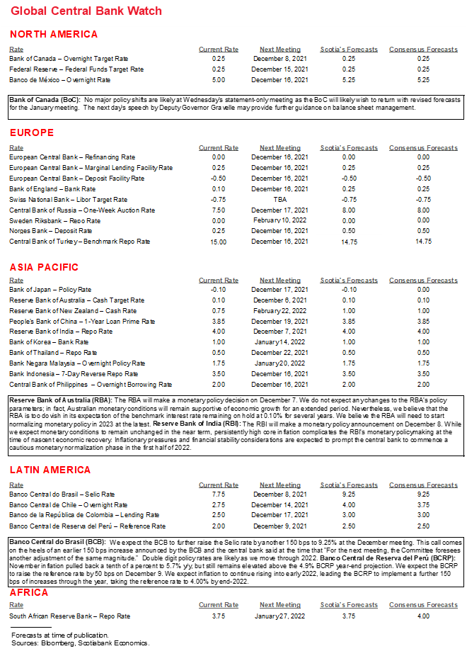 As for the statement and Gravelle’s broader guidance, the best course of action for the BoC is likely to play it safe in a short and sweet statement that defers deeper thoughts to the next meeting on January 26th 2022 which will be a full meeting including a Monetary Policy Report containing fresh forecasts. By that time, there may be greater available insight into the threat posed by the Omicron variant once we hopefully learn more about the efficacy of vaccines, antibody drugs and other treatments, the severity of symptoms across broader populations and the speed at which it is spreading. For now, expect a statement reference to this fresh uncertainty while leaving it at that. Also by that time, the Federal Government’s somewhat opaque process to date around setting fiscal policy priorities may be better informed including via the December 14th Budget Update.