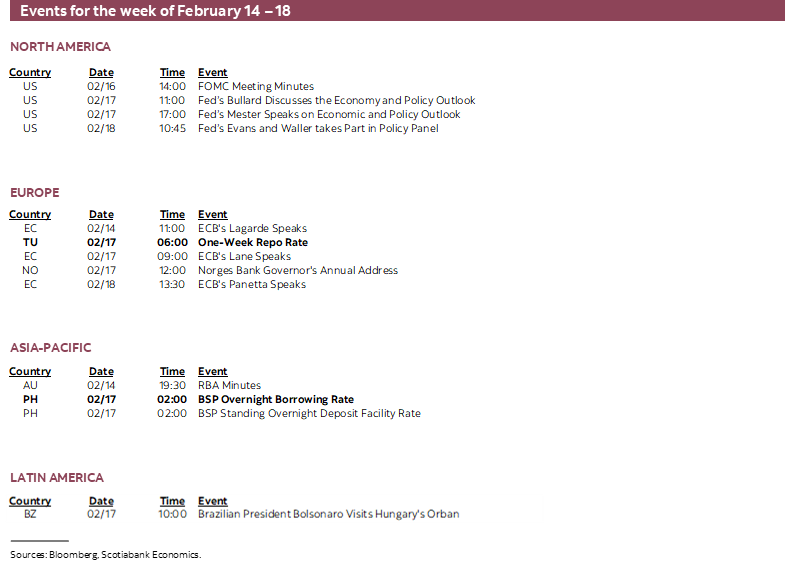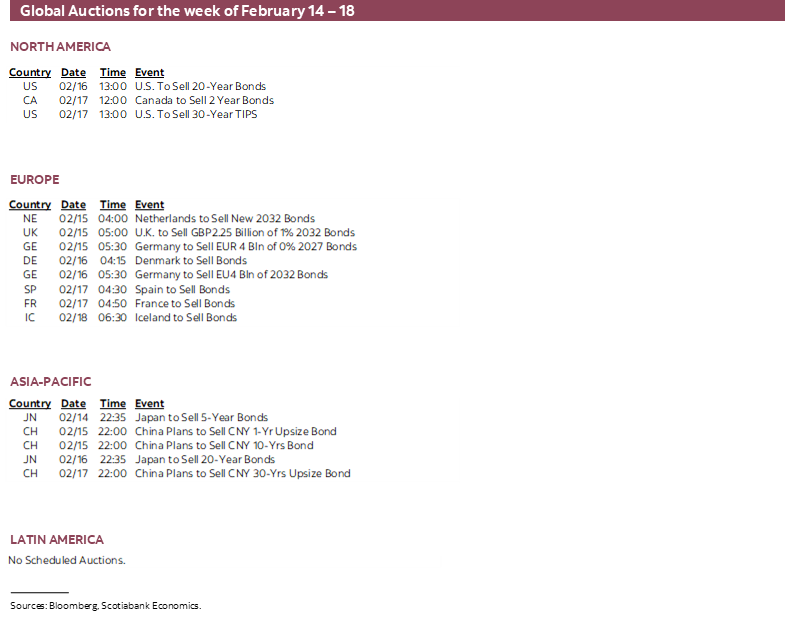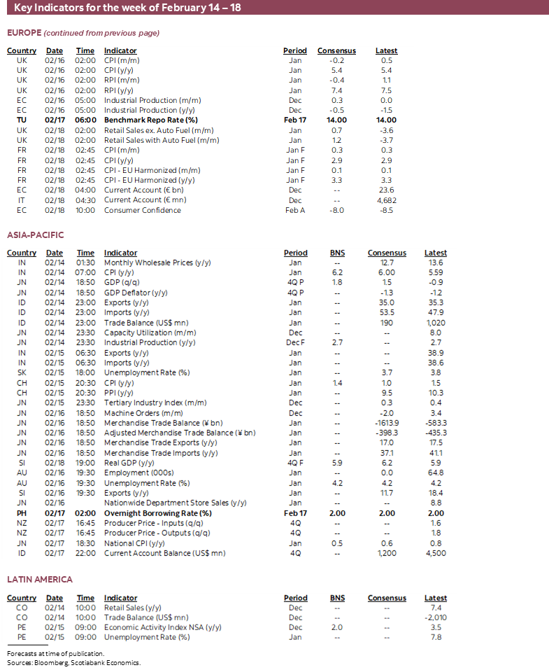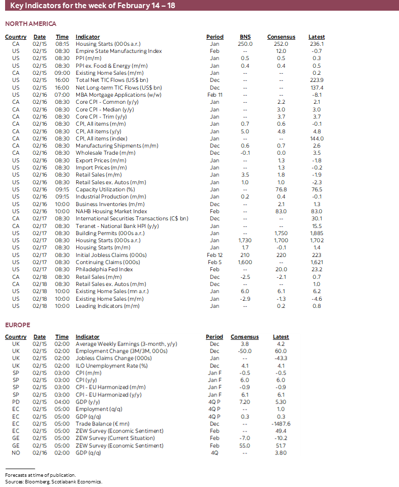 Global consumers may have vaulted back onto the scene to start the new year off at least in the US, UK and Canada. Because of a large gain in vehicle sales during January, US retail sales probably posted a very strong gain last month (Friday); I’ve estimated it at +3.5% m/m with a 21% rise in new vehicle sales potentially adding about three-percentage points to overall growth in retail sales on its own. Canadian retail sales have already been guided to have declined by 2.1% m/m in December and the final estimate may land lower, but watch January’s flash guidance (Friday). UK retail sales are expected to rebound in January after the 3.7% m/m drop in December.