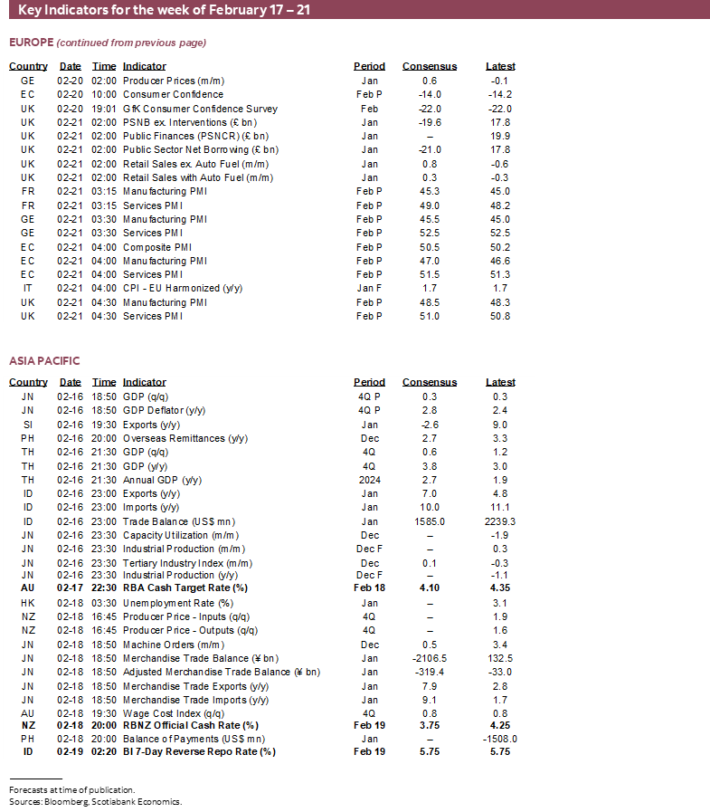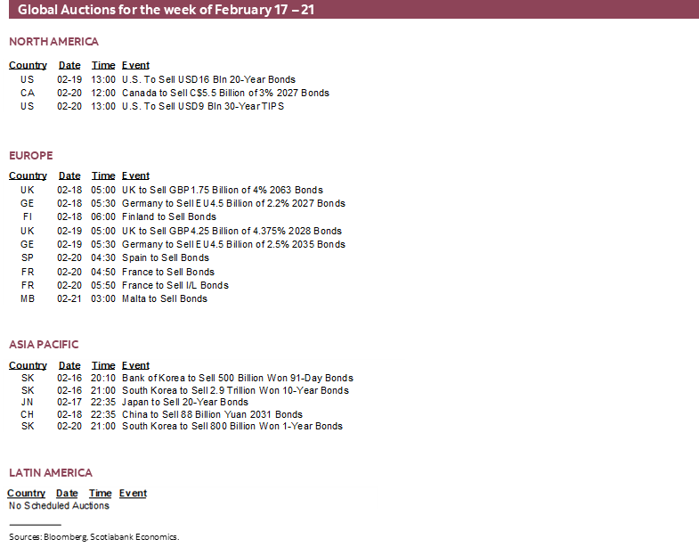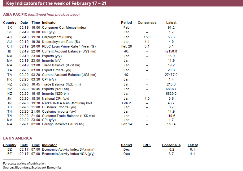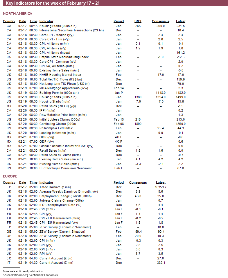 Canada will also update some housing data with starts for January on Monday and existing home sales for January on Tuesday. Friday’s retail sales for December are expected to come in strongly given advance guidance the nominal value was up 1.6% m/m SA and we should get preliminary guidance for January.