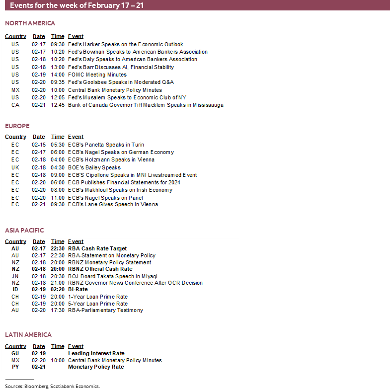 The last holdout among major central banks is likely to cave when the RBA cuts and its decision will be joined by the RBNZ, Bank Indonesia, FOMC minutes that may reveal more about regulatory developments, and another cautious speech by BoC Governor Macklem. Data risk will focus upon Canadian CPI, UK jobs, wages, CPI and retail sales, Australian jobs and wages, and other regional measures.