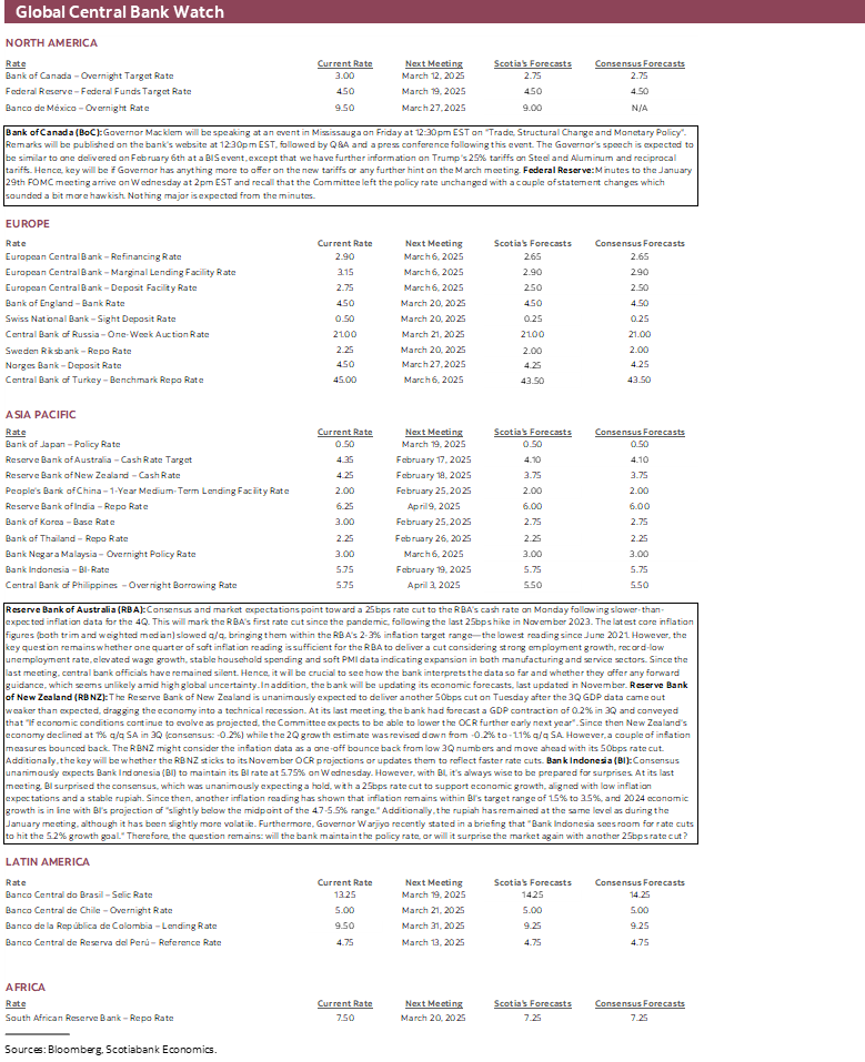 Key will be the ambiguity around how the policy rate would be managed in tariff scenarios. On that, the recent Summary of Deliberations to the January meeting provided two key passages that should be read very carefully by BoC watchers.