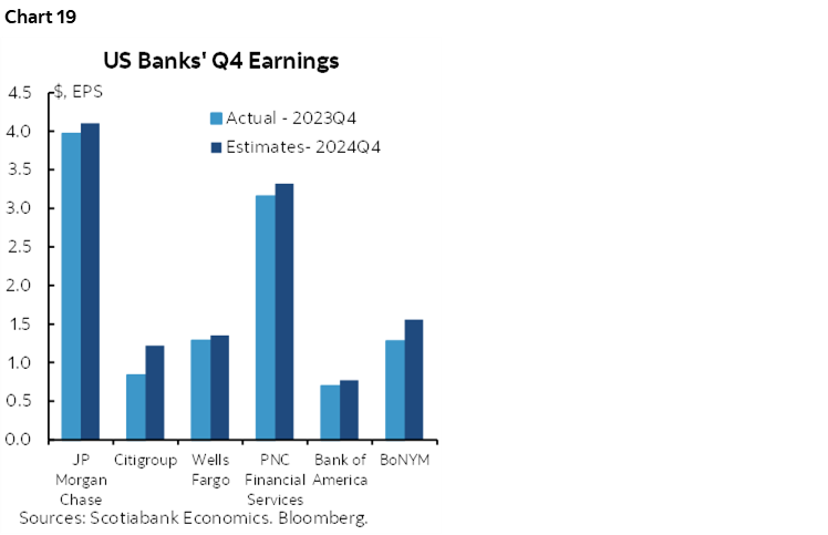 Finally, a large number of top-tier US financials will report Q4 and full year results this week. Wednesday (Goldman, JP Morgan, Citi) and Thursday (BofA, Morgan Stanley) will be the two main days to watch. Analysts estimates are shown in chart 19.