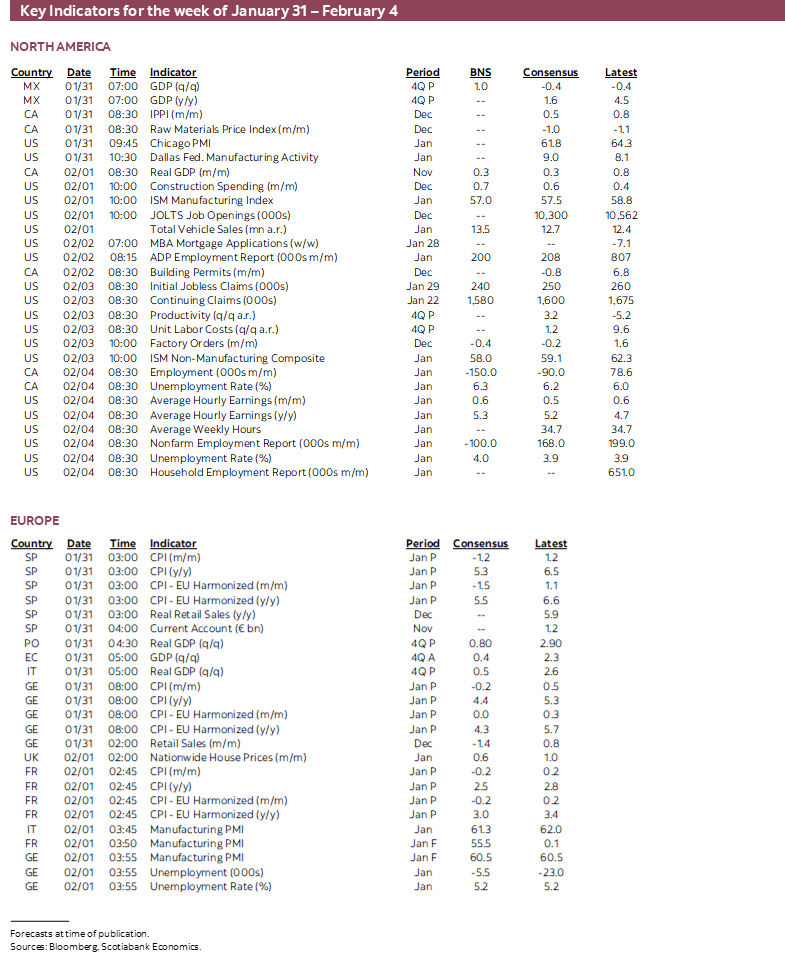 This report has been prepared by Scotiabank Economics as a resource for the clients of Scotiabank. Opinions, estimates and projections contained herein are our own as of the date hereof and are subject to change without notice. The information and opinions contained herein have been compiled or arrived at from sources believed reliable but no representation or warranty, express or implied, is made as to their accuracy or completeness. Neither Scotiabank nor any of its officers, directors, partners, employees or affiliates accepts any liability whatsoever for any direct or consequential loss arising from any use of this report or its contents.