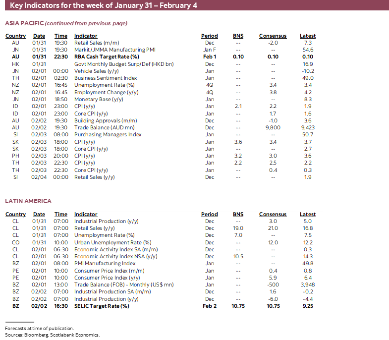 Other focal points will include CPI readings from Indonesia (Tuesday) and then South Korea, Philippines and Thailand (Thursday), Australian retail sales during Q4 (-2% q/q consensus, prior +7.3%, Monday), India’s purchasing managers’ indices (Tuesday) and the usual monthly data dump from Japan to start the week.