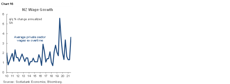 RBNZ-watchers just got an inflation jolt and now they’ll turn their attention to the state of the labour market. On Tuesday (eastern times as always) we’ll get the change in employment and wages during Q4. Employment growth is expected to moderate substantially from the large Q3 gain but continued strong wage growth is expected (chart 16).