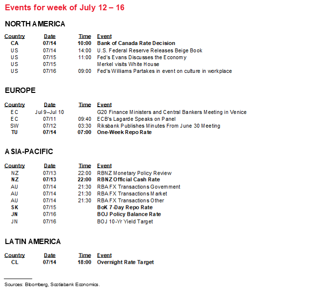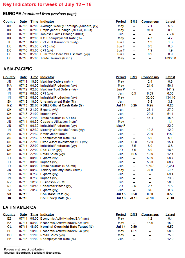 China also updates June readings for retail sales, industrial output, exports and the jobless rate over the first half of the week. I’ll write more about those readings in daily notes over the coming week.