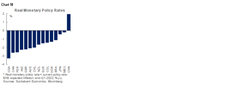 This is likely the overall motivation toward taking modest steps to add stimulus including the cut to required reserve ratios that takes effect on Thursday. Still, China is in this position in part because it resisted going down the same path it has travelled. This time, it has not embraced easing to the degree to which other countries have embraced it, and the country’s inflation-adjusted policy rate is one illustration of this (chart 10). China has so far been reticent to follow the prior playbook in part because of memories of what that did to stability and excesses.