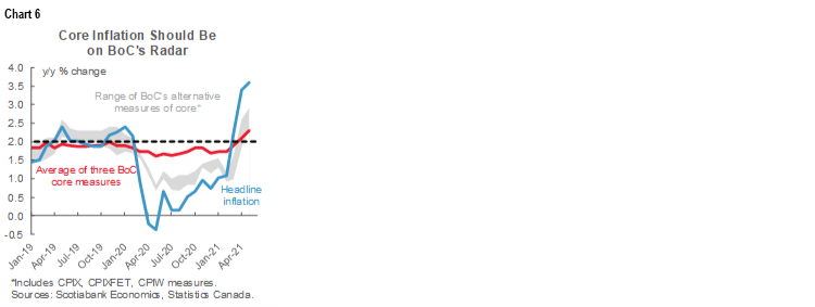 5. Core inflation measures continue to be roughly on or slightly above the BoC’s target (chart 6).