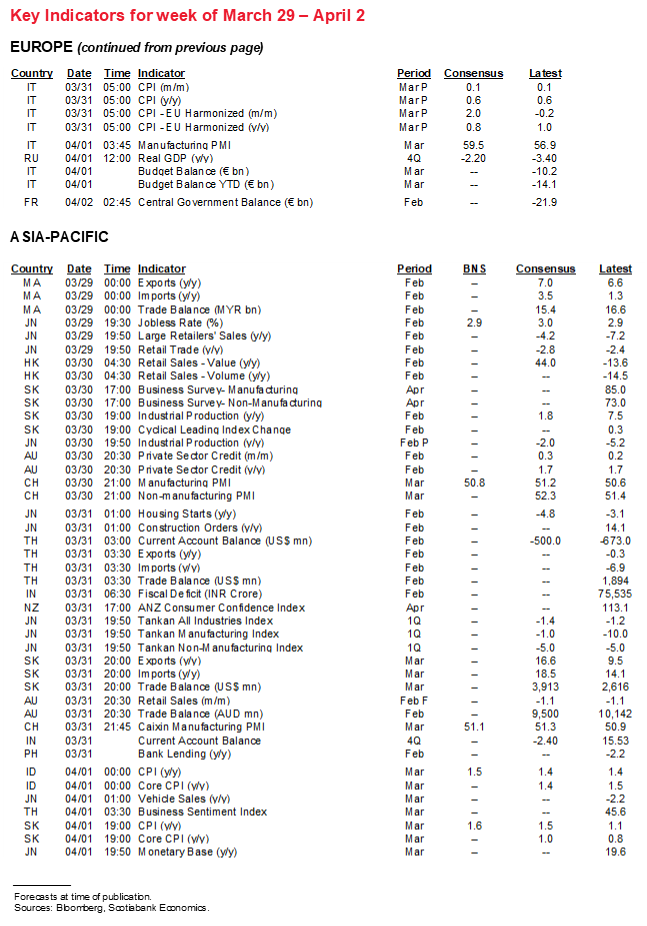 Other US macro releases will struggle to get much attention behind nonfarm and ISM-manufacturing. Still, pending home sales in February are expected to decline again (Wednesday) partly given supply shortages. Vehicle sales are expected to rebound in Thursday’s reading for March as improved weather following February’s snowstorms may provide at least temporary relief from production challenges due in part to global semiconductor chip shortages. Construction spending in February (Thursday) is likely to follow housing starts lower and again in no small part due to harsher than usual weather.