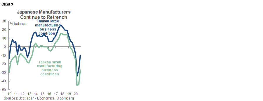 Is Japan’s economy continuing to gradually mend? We’ll get a sense of this when the Q1 Tankan reports arrive early in the week that may inform expectations for Q1 GDP after two consecutive gains. The gradual improvements in the manufacturing sector into year-end are shown in chart 9.