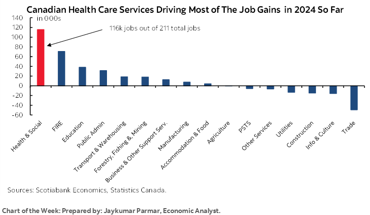 Policy changes could either lean toward a mild gain estimated at 10k, or downside risk. Changes to the temporary foreign workers program and international student application volumes could negatively impact employment by reducing fill rates and perhaps creating job vacancies given how much job growth this year has been driven by temps (chart 2). This should be controlled against as a welcome development given the role that excessive numbers of arrivals under both categories have driven much of the rise in the nation’s unemployment rate and so an important detail will be to attempt to remove these effects.
