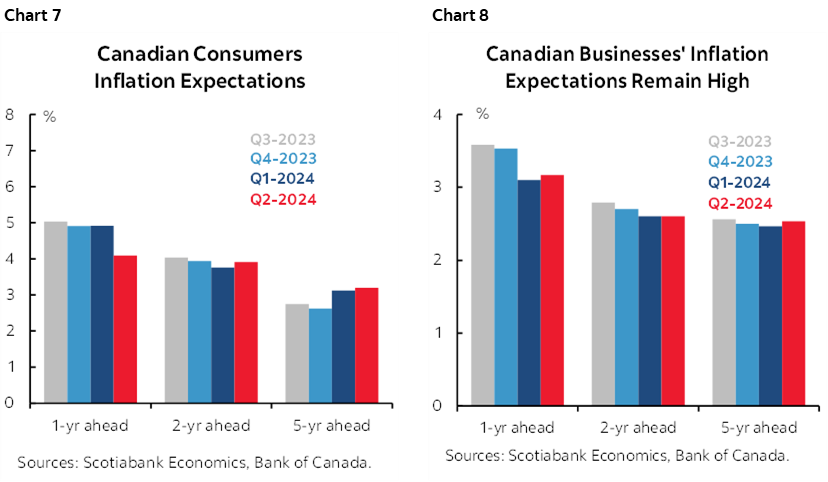 Two hours later we’ll get the BoC’s quarterly Business Outlook Survey and Canadian Survey of Consumer Expectations that precede BoC meetings including a Monetary Policy Report. Key will be the gauges of inflation expectations that have remained notably above the BoC’s 2% headline CPI target (charts 7, 8).
