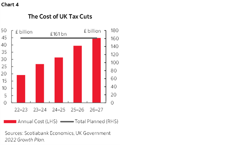 The election also matters because it arrives on the heels of the UK government’s fiscal policy plans. See here for a reminder of what they included and chart 4 for a reminder of the price tag associated with the UK government’s announced tax cuts that blew up the gilts market.