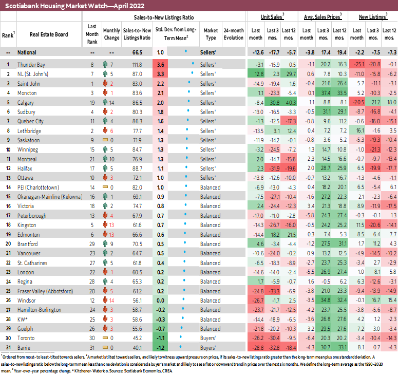We are definitely at a point of heightened uncertainty, largely driven by the war in Ukraine and its impacts on already strained supply chains and inflationary pressures, which are necessitating aggressive monetary tightening and adding to fears of recession in various regions. The IMF World Uncertainty Index has increased sharply in the first quarter of 2022, with the war-related uncertainty accounting for almost 40% of the global total. While the uncertainty was initially higher in European countries, the gap across regions is narrowing over time. This is exacerbating the housing-specific uncertainty in Canada, with increases in borrowing rates and volatile swings in sales activity occurring in a market that is quite elevated and overheated. No wonder then that many are holding off until some of the fog clears and as the impact of the war and rising rates on the economy and the housing market become more clear. This wait-and-see approach is evident through responses to the Scotiabank Housing Poll in April 2022, which show that more than half of younger Canadians (56%) have put their home buying plans on hold due to the current economic environment and interest rates outlook.