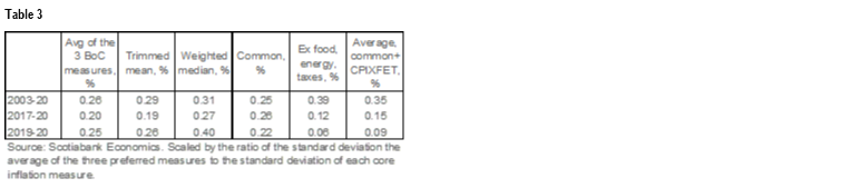 - The Bank of Canada currently considers a broad range of inflation measures as it evaluates its policy stance. Our results suggest the Bank should put less emphasis on the inflation measures it developed in 2017, and go back to basics by placing more emphasis on CPI excluding food, energy and indirect taxes in its communications and policy deliberations.