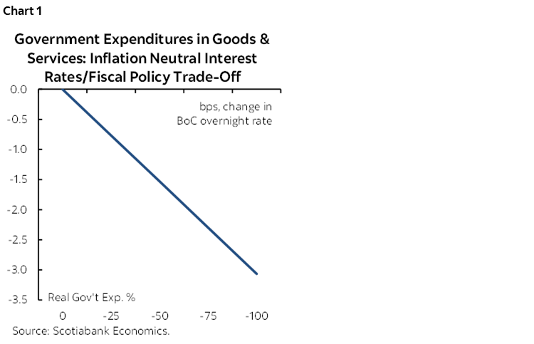 - In Canada, as elsewhere, the Bank of Canada is fighting the lagged and ongoing impact of fiscal support measures along with a range of other inflation drivers. Given this, the output losses that the BoC must engineer to rein in inflation are falling disproportionately on the private sector. In effect, high levels of fiscal spending will necessitate an unnecessarily large crowding out of private spending. Less government consumption would lead to a lower path for the policy rate and take some of the burden of adjustment away from the private sector.