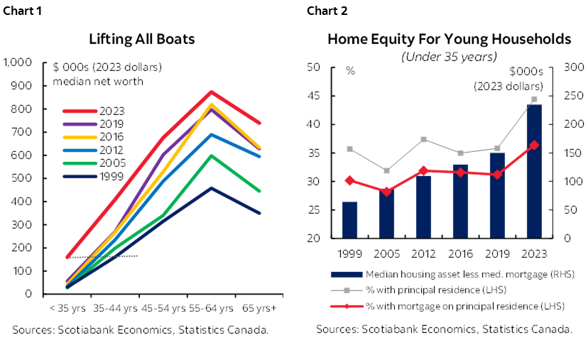 Sentiment remains subdued and this data release will not shift that mood. Canadians are still preoccupied with a broad array of real and perceived economic, social and geo-political issues. But households and policymakers cannot likely bank on a repeat of that 2023 snapshot. There were a host of pandemic-related factors at play behind many of the drivers of income and wealth creation, as well as unique circumstances that dampened debt accumulation. As pandemic factors drop out, wealth accumulation is likely to revert to fundamental drivers.